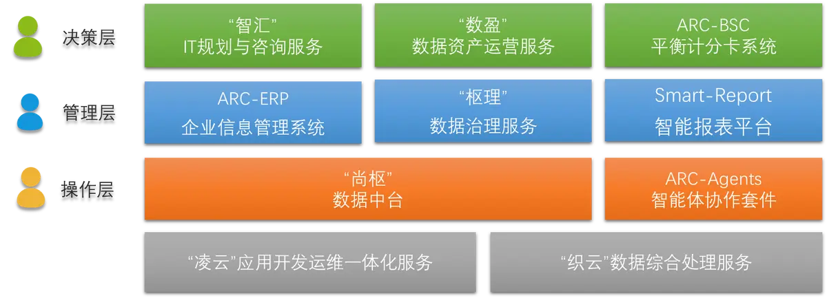 在決策層,“智匯”IT規(guī)劃與咨詢(xún)服務(wù),憑借專(zhuān)業(yè)團(tuán)隊(duì)對(duì)行業(yè)趨勢(shì)和技術(shù)生態(tài)的深度洞察,為企業(yè)量身定制契合發(fā)展戰(zhàn)略的IT架構(gòu)藍(lán)圖,明晰數(shù)字化路徑;“數(shù)盈”數(shù)據(jù)資產(chǎn)運(yùn)營(yíng)服務(wù),挖掘企業(yè)數(shù)據(jù)價(jià)值,將分散數(shù)據(jù)轉(zhuǎn)化為可運(yùn)營(yíng)、能創(chuàng)造效益的資產(chǎn),驅(qū)動(dòng)業(yè)務(wù)創(chuàng)新;ARC - BSC平衡計(jì)分卡系統(tǒng),以戰(zhàn)略為導(dǎo)向,從財(cái)務(wù)、客戶(hù)、內(nèi)部流程、學(xué)習(xí)與成長(zhǎng)等維度,量化指標(biāo)、監(jiān)控進(jìn)度,助力科學(xué)決策 。