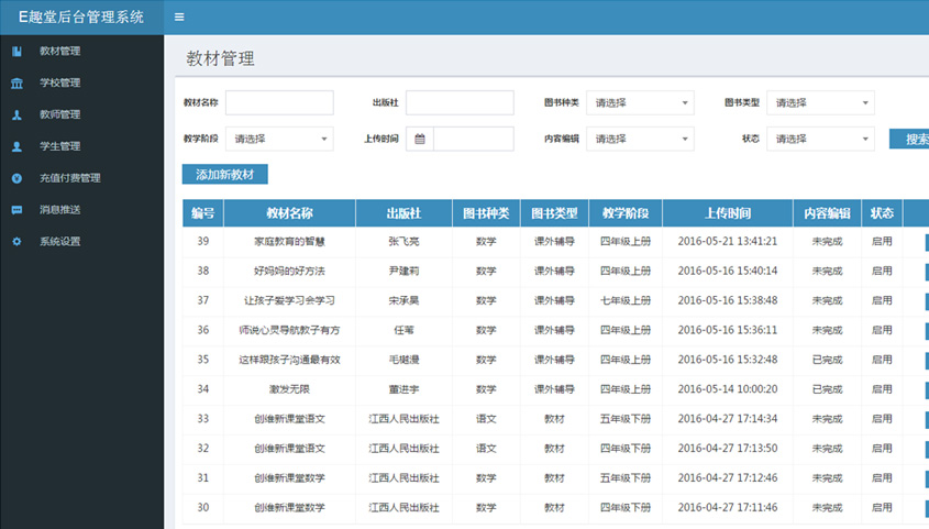 - 教材管理 管理平臺(tái)教材信息,采用圖片掃描、上傳、編輯對(duì)書本進(jìn)行錄入