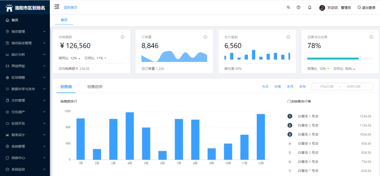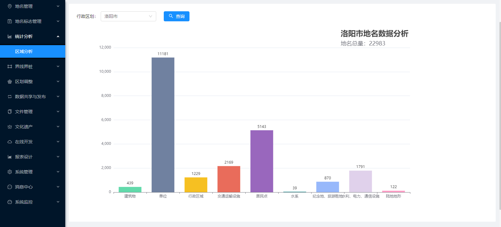 地名信息管理:地名管理、地名標(biāo)志管理、統(tǒng)計分析