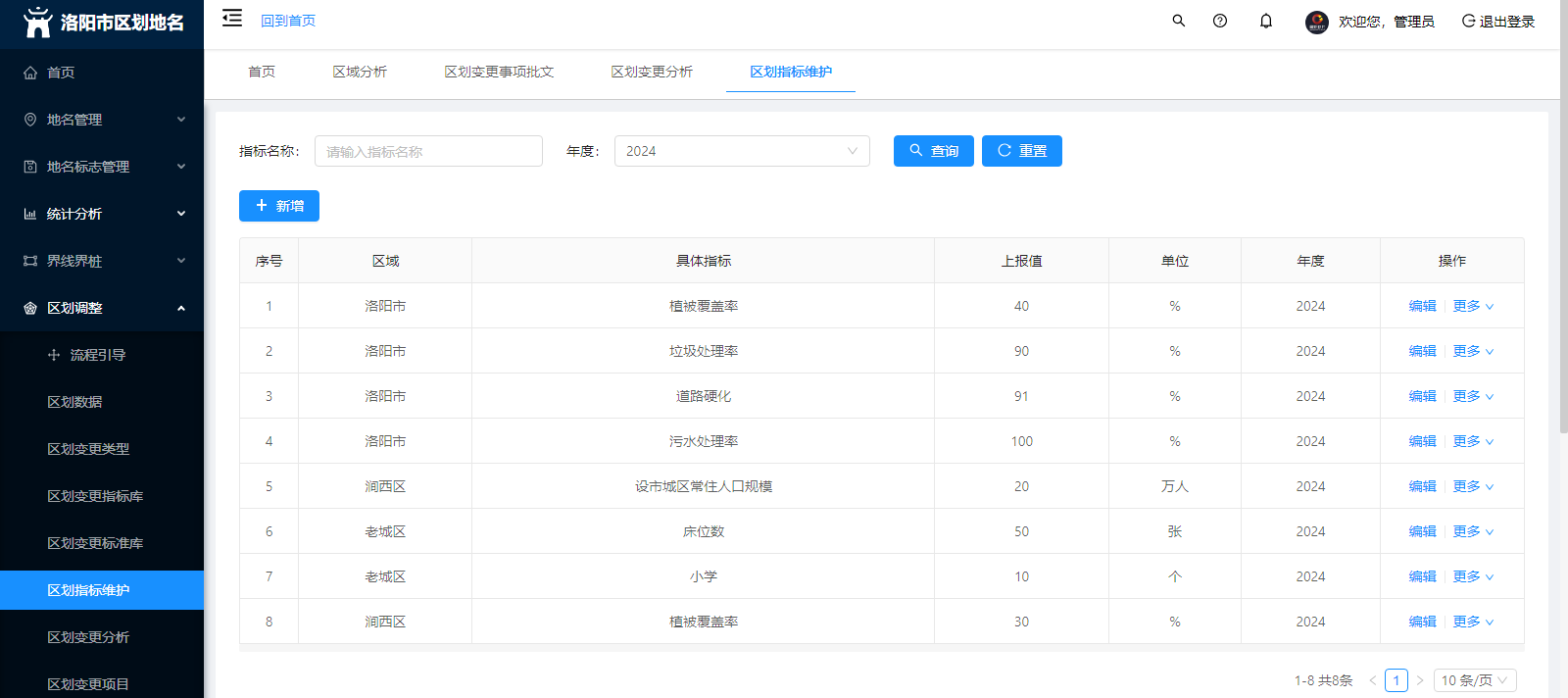 區(qū)劃調(diào)整:區(qū)劃數(shù)據(jù)、區(qū)劃變更類別、區(qū)劃變更指標(biāo)庫、區(qū)劃指標(biāo)維護(hù)、區(qū)劃變更分析、年度區(qū)劃變更表、區(qū)劃變更事項批復(fù)文件、歷史文件上傳